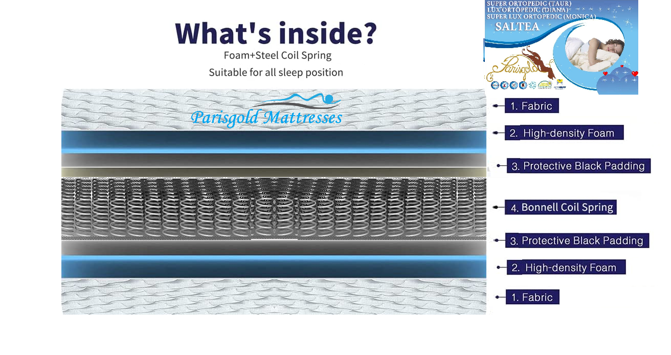 - Elastic core made of non-deformable steel bonell springs with a diameter of ø 2.2 mm.;